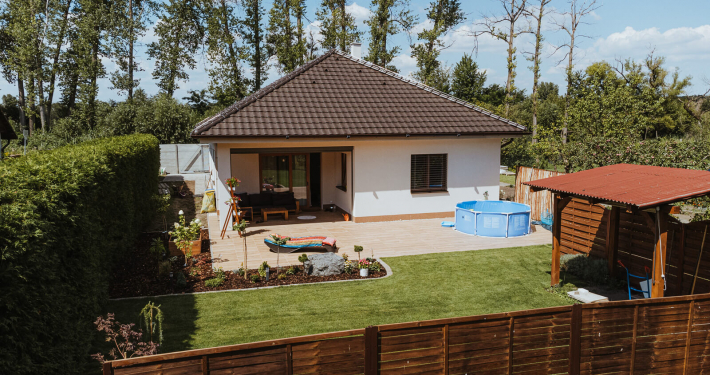 POPIS: kompletní realizace menšího rodinného domu na klíč. Dům je vybaven podlahovým vytápěním pomocí plynového kotle i klimatizací. V blízké budoucnosti je v plánu realizace fotovoltaické elektrárny.